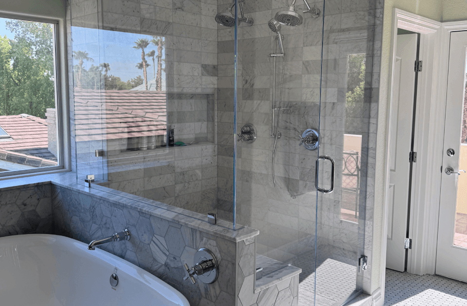 A stunning shower enclosure can completely transform the look and feel of a bathroom, and that is exactly what our shower glass installation delivers. Our standard glass thickness includes 3/8" and 1/2", with additional options available for special requests. For unique bathroom layouts, we design and install customized shower doors to ensure a seamless fit. We install framed, semi-frameless, or frameless shower enclosures with precision and care, offering a sleek upgrade that blends style and function. You can choose from different door styles such as sliding, hinged, or pivot, giving flexibility in both design and convenience. To complete the look, we offer hardware finishes in chrome, matte black, brushed nickel, and gold, with powder coating available to match your specific color preferences. For long-lasting results, we can apply protective coatings that minimize water spots and soap scum, making maintenance easier while keeping your shower looking its best.